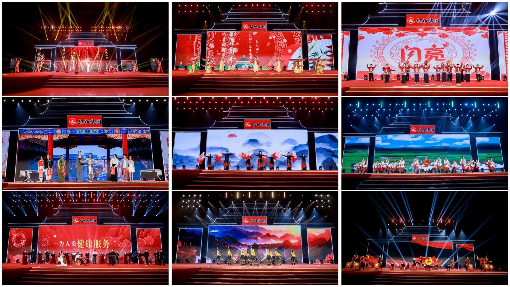晚會在震撼的開場秀《致遠未來》中拉開帷幕。仁和之星藝術團以充滿科技感的舞臺設計,配合電光旗幟,演繹了仁和集團對醫藥大健康全面轉型升級的美好未來憧憬;仁和制藥舞蹈《團團圓圓》,以柔美的扇舞與燈籠道具,勾勒出萬家燈火、闔家團圓的溫馨畫面,傳遞出“仁和一家親”的濃情深意;兒童街舞《新年新閃亮》充滿童趣活力,仁和新生代小演員們以整齊劃一的動作和燦爛笑容,展現了企業“傳承與創新并重”的文化基因;電商公司創作的亮點情景劇《我AI仁和》,通過人工智能與員工日常工作的互動場景,生動展現了仁和集團在數字化服務、智慧藥房等領域的創新實踐。劇中AI機器人“小潔”的幽默臺詞與精準服務,引發陣陣歡笑與贊嘆;康美公司的舞蹈《逆風行歌》,舞者們剛柔并濟的舞姿,詮釋了仁和人在面對困難時無畏前行、逆風而上的堅韌精神;江西制藥的舞蹈《奔騰》,舞者們矯健的身姿如同駿馬奔騰,展現出仁和集團在新一年勇往直前、開拓進取的堅定決心;仁和之聲合唱團以《稻香》《我相信》兩首勵志歌曲聯唱,溫暖的歌聲傳遞出仁和人對美好生活的向往和對未來的堅定信念,引發全場共鳴。和力藥業表演的舞蹈《華夏同輝》,以大氣的編排和精美的服飾道具,展現了中華民族傳統文化的魅力與民族自豪感。壓軸節目來自仁和中方獻上的鼓舞《出征》,鏗鏘的鼓點與恢弘的陣勢,彰顯了仁和人“敢為人先、使命必達”的昂揚斗志,寓意仁和集團在新一年將以飽滿的熱情踏上新征程。
