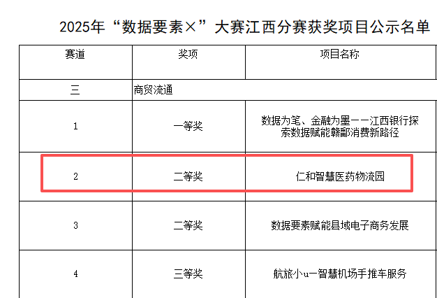以數字賦能打造智慧醫藥物流領域新標桿 ——仁和智慧醫藥物流園項目榮獲2025“數據要素×”大賽江西省二等獎